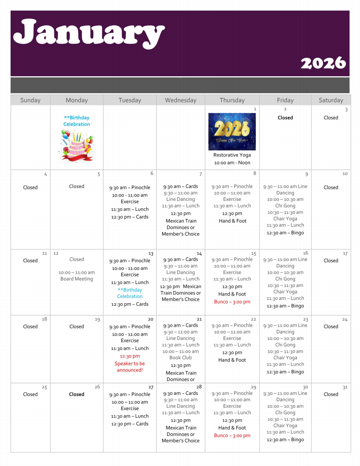 Pinochle is played on Tuesday and Thursdays, at 9:30 am. Our Pinochle peeps are looking for more players. Come and join this fun bunch!