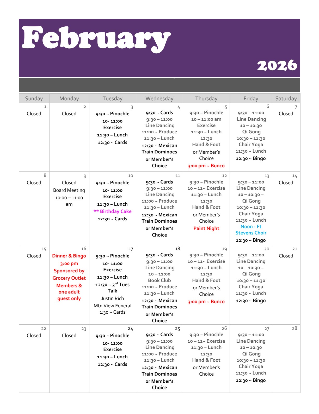 Pinochle is played on Tuesday and Thursdays, at 9:30 am. Our Pinochle peeps are looking for more players. Come and join this fun bunch!